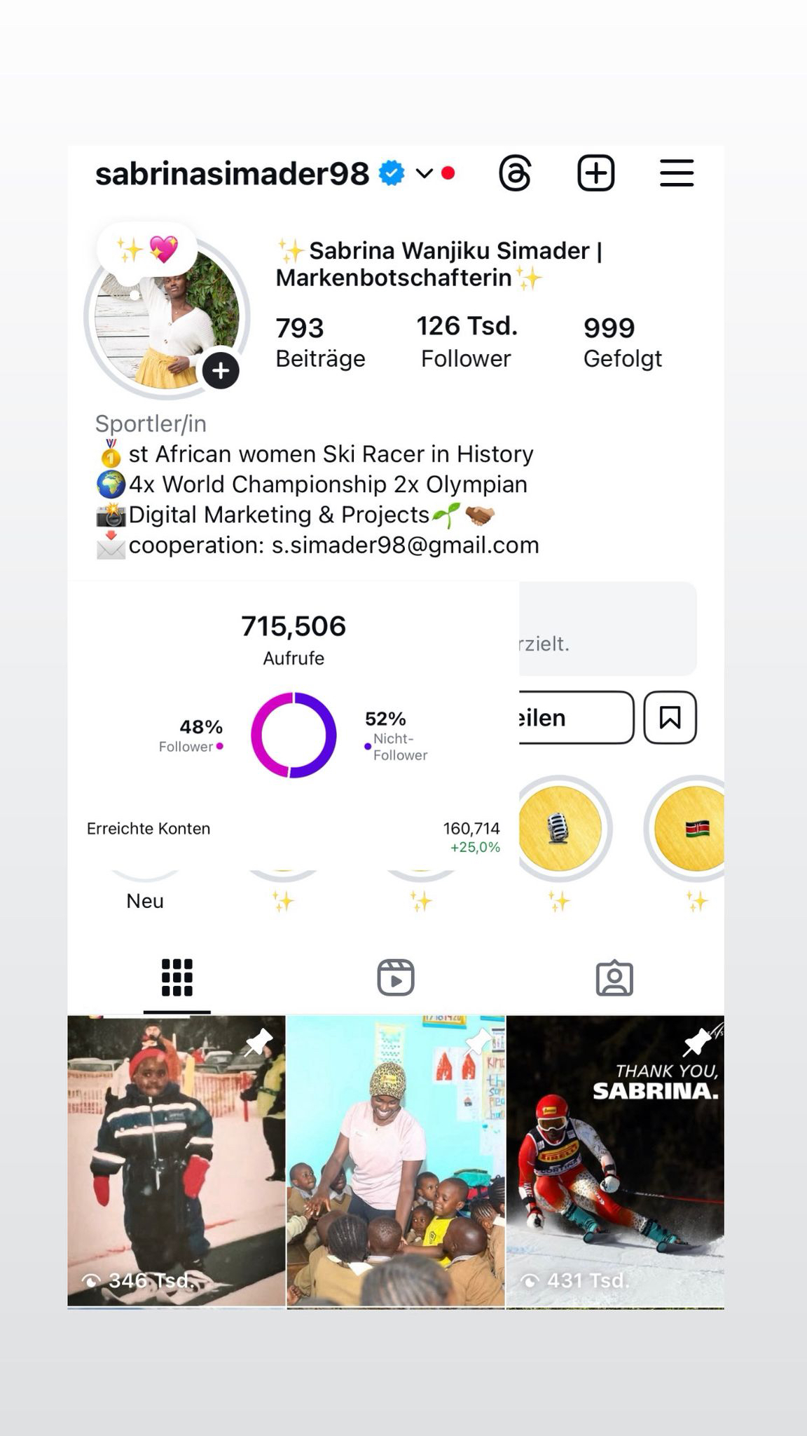 Als erste afrikanische professionelle Skirennläuferin der Geschichte, habe ich es mir zum Ziel gesetzt, Menschen weltweit auf meine persönliche Art zu inspirieren.